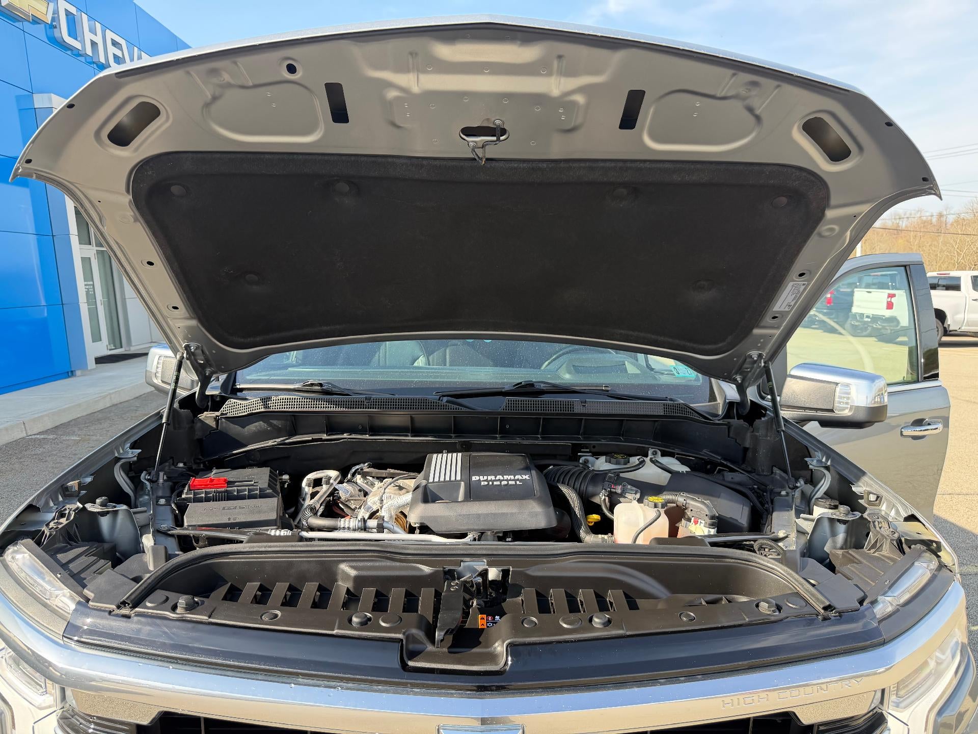 2023 CHEVROLET SILVERADO HIGH COUNTRY - 4WD - 3.0L DURAMAX DIESEL, POWER SUNROOF, TECHNOLOGY PACKAGE - POWER RETRACTABLE SIDE STEPS The 2023 Chevrolet Silverado 1500 High Country 4WD in Sterling Gray Metallic represents the pinnacle of truck luxury and efficiency, powered by the impressive Duramax 3.0L Turbo-Diesel engine and a smooth 10-speed automatic transmission. The exterior is commandingly styled with striking 22-inch Carbon Flash Metallic aluminum wheels, power-retractable assist steps w ith LED lighting, and the versatile Chevytec spray-on bedliner. Inside, the Jet Black and Nightshift Blue cabin offers an unmatched experience with premium leather seating surfaces, heated and ventilated front bucket seats, and a massive 13.4-inch diagonal color touchscreen featuring Google built-in. This flagship model is loaded with advanced technology, including a 12.3-inch digital driver information center, a Bose Premium Sound System, and a Bed View Camera for effortless hauling. Safety is comprehensive with the standard Chevy Safety Assist suite, HD Surround Vision, and specialized towing tech like Trailer Side Blind Zone Alert and Rear Cross Traffic Braking. Experience the power and refinement of this Silverado High Country for yourself by visiting Solomon Chevrolet Buick GMC in McClellandtown, PA, or call us at 866-603-0617 to schedule your test drive today! THIS CARBRAVO CERTIFIED PREOWNED VEHICLE GOES THROUGH A 126 POINT SAFETY CHECK AND COMES WITH THE REMAINING FACTORY WAR RANTY PLUS AN ADDITIONAL 12 MONTH/12,000 LIMITED BUMPER-TO-BUMPER WARRANTY! SPECIAL FINANCING IS AVAILABLE. NO CREDIT? NO PROBLEM, WE CAN HELP! WE ARE A CERTIFIED CHEVROLET BUICK GMC DEALER SO SHOP US WITH CONFIDENCE!! WE NEED YOUR TRADE, AND WE WILL GIVE YOU TOP DOLLAR FOR IT! SOLOMON CHEVROLET BUICK GMC, MCCLELLANDTOWN PA 724-583-7738. WWW.SOLOMONAUTO.COM